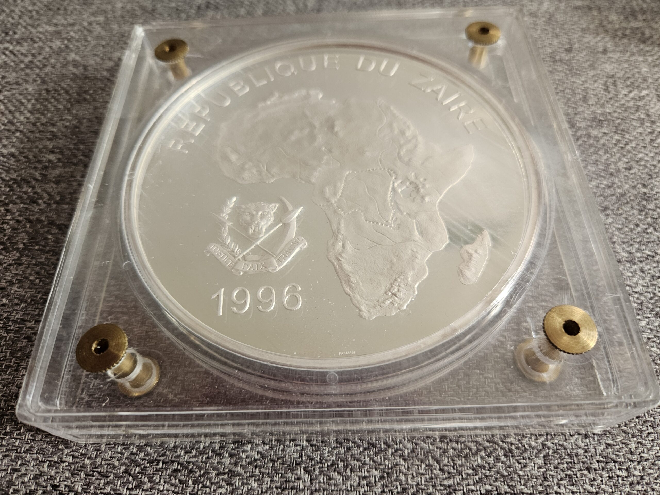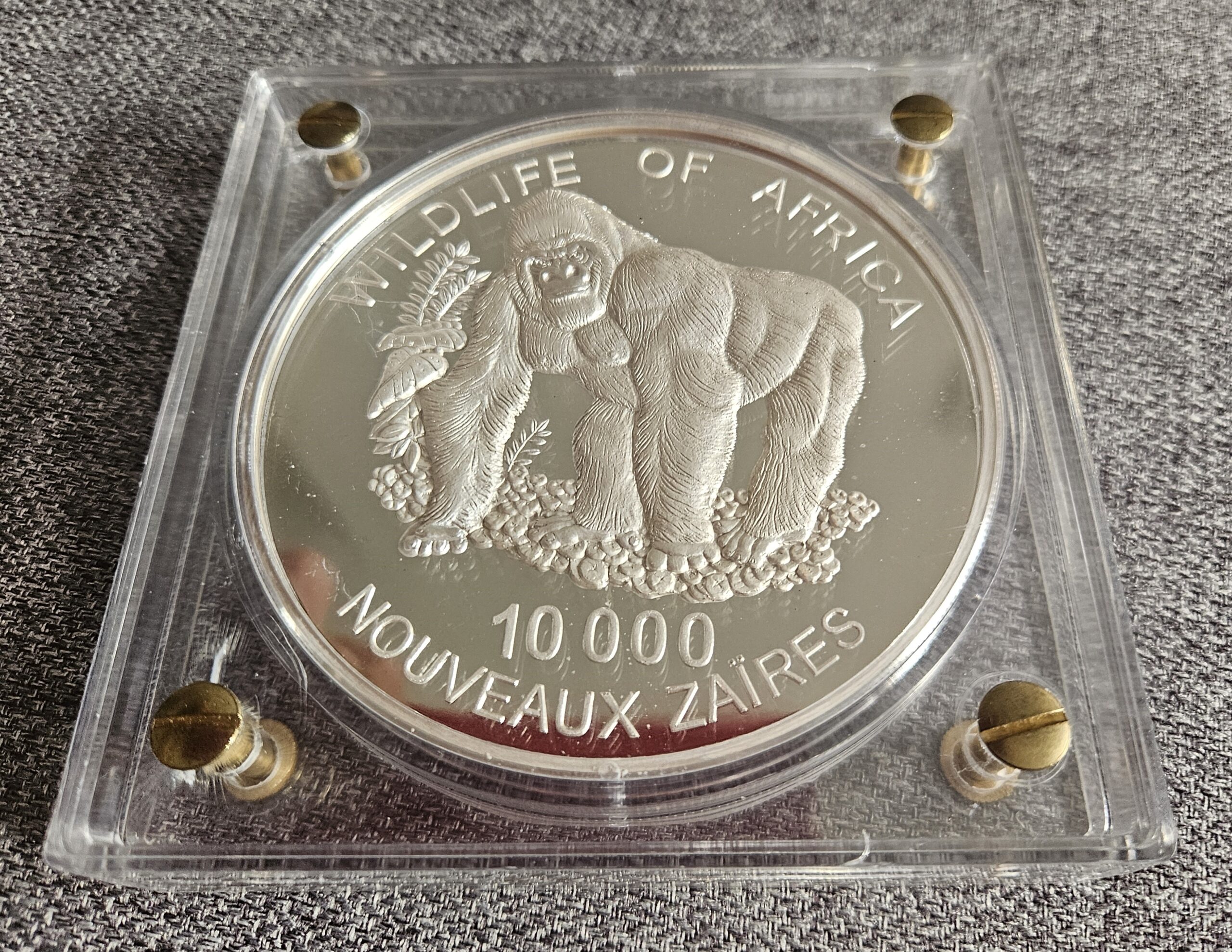 1 kg Silber Wildlife of Africa, Gorilla, 1996, 10 000 Nouveaux Zaires PP. wie abgebildet in Hülle
