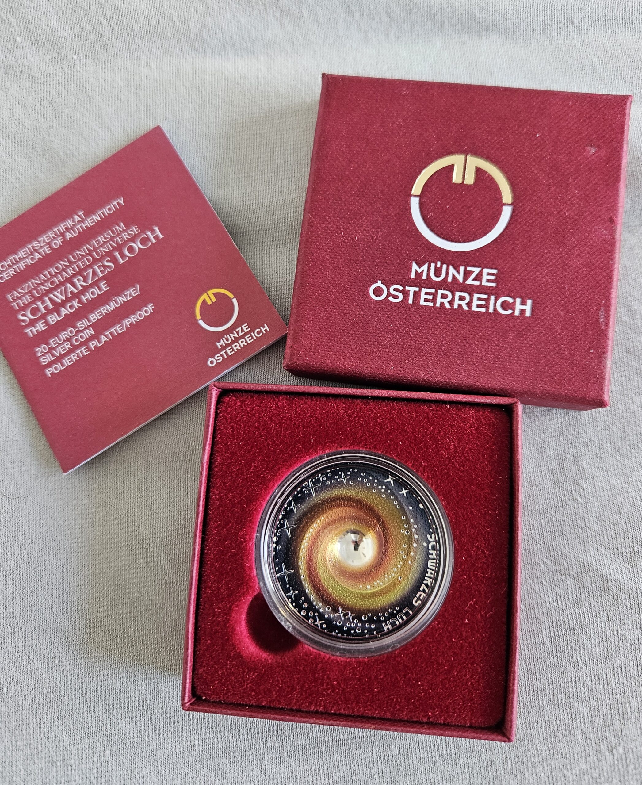 ÖSTERREICH 20 Euro 2022 “Schwarzes Loch” PP, silber, aus der Serie: Faszination Universum, mit Zertifikat, Schatulle,