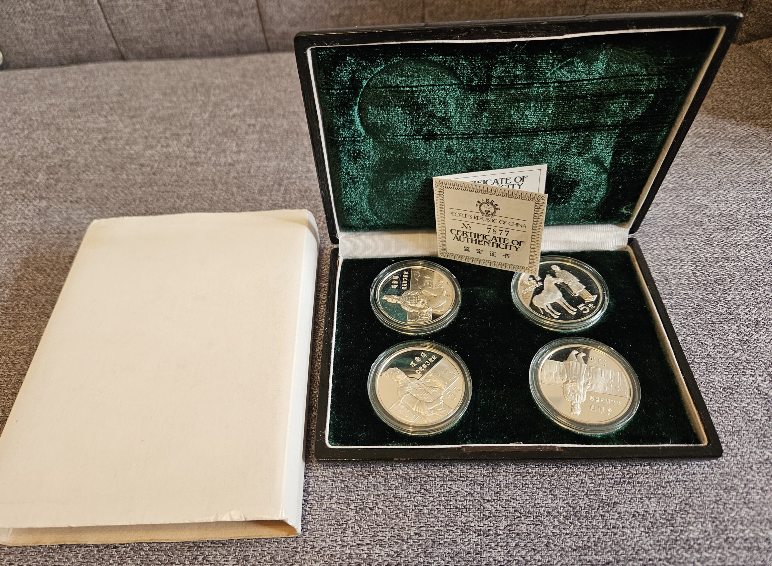 China Set 4 Stück 5 Yuan, silber, 20 g fein, PP, mit Zertifikat, in Schatulle und Überkarton