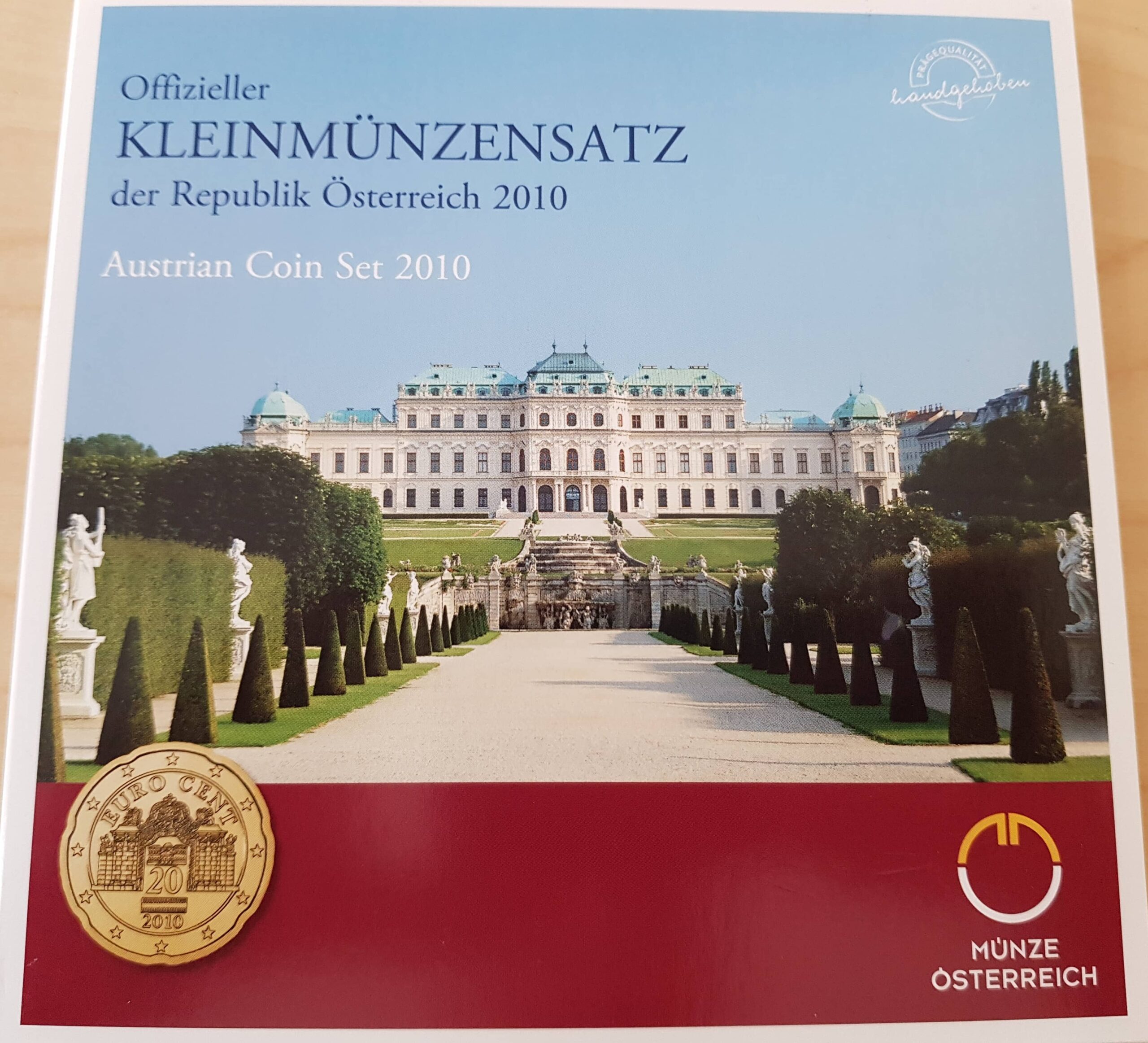 ÖSTERREICH 2. Repbulik KMS Euro-Münzensatz 2010 handgehoben