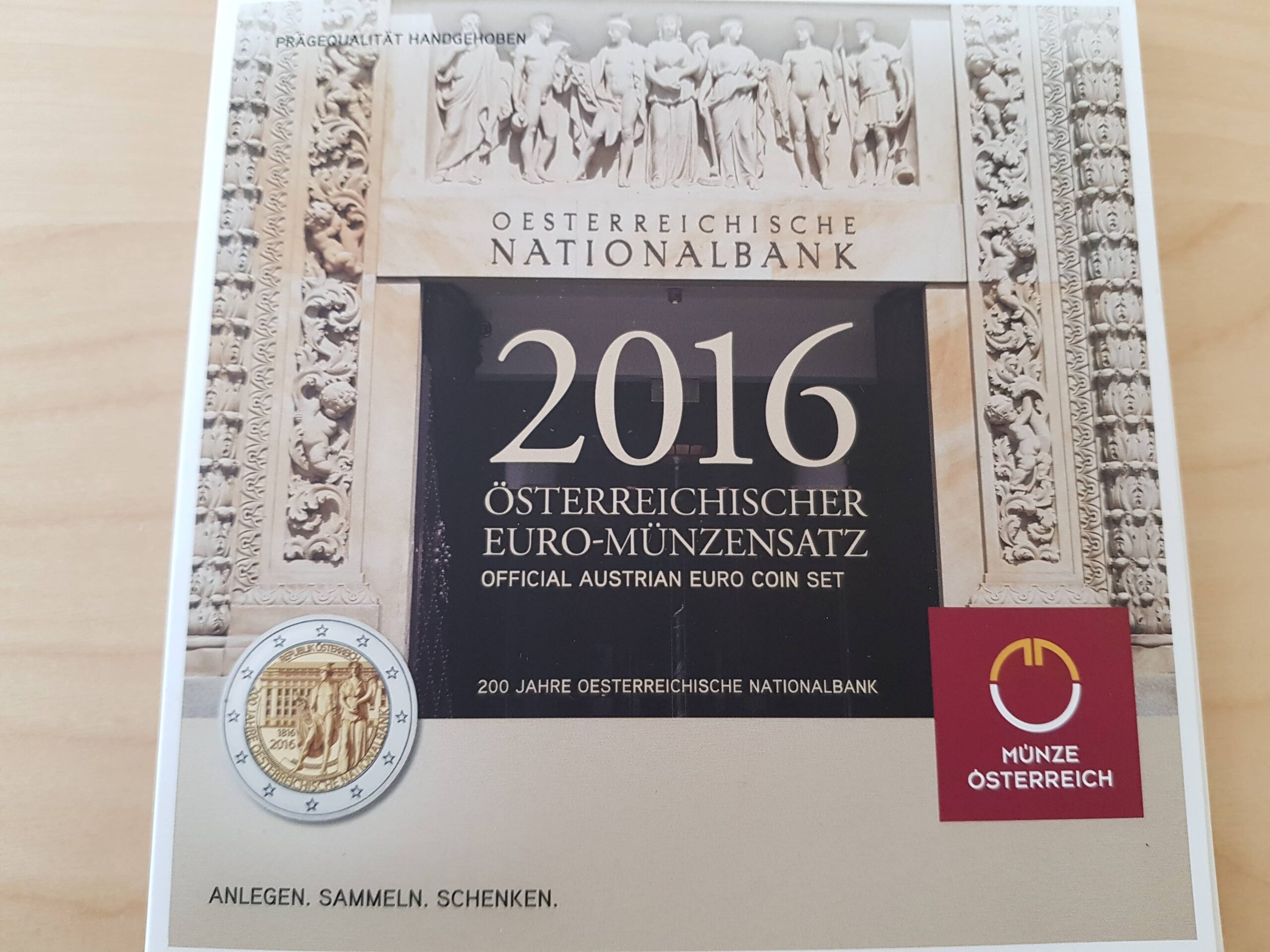 ÖSTERREICH 2. Repbulik KMS Euro-Münzensatz 2016 handgehoben, Auflage nur 50.000 Stk., Erhaltung: handgehoben im Blister der Münze Österreich