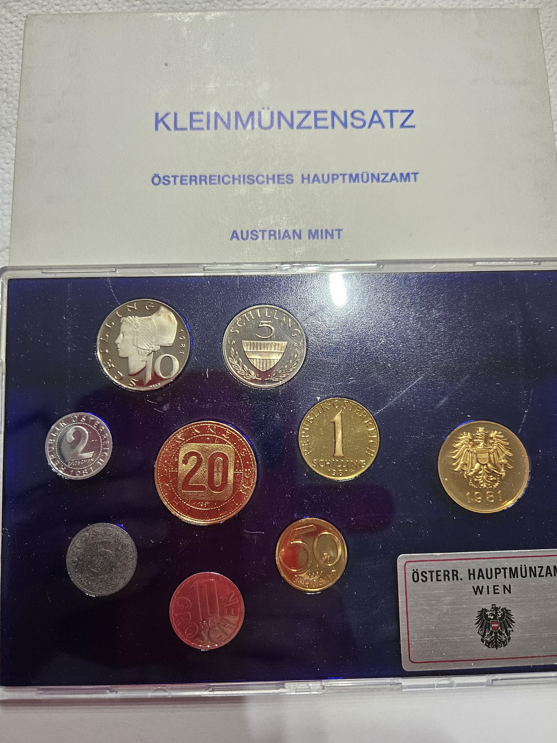 ÖSTERREICH 2. Repbulik KMS Schilling-Münzensatz 1981, PP, Österreichisches Hauptmünzamt, Überkarton mit Gebrauchsspuren