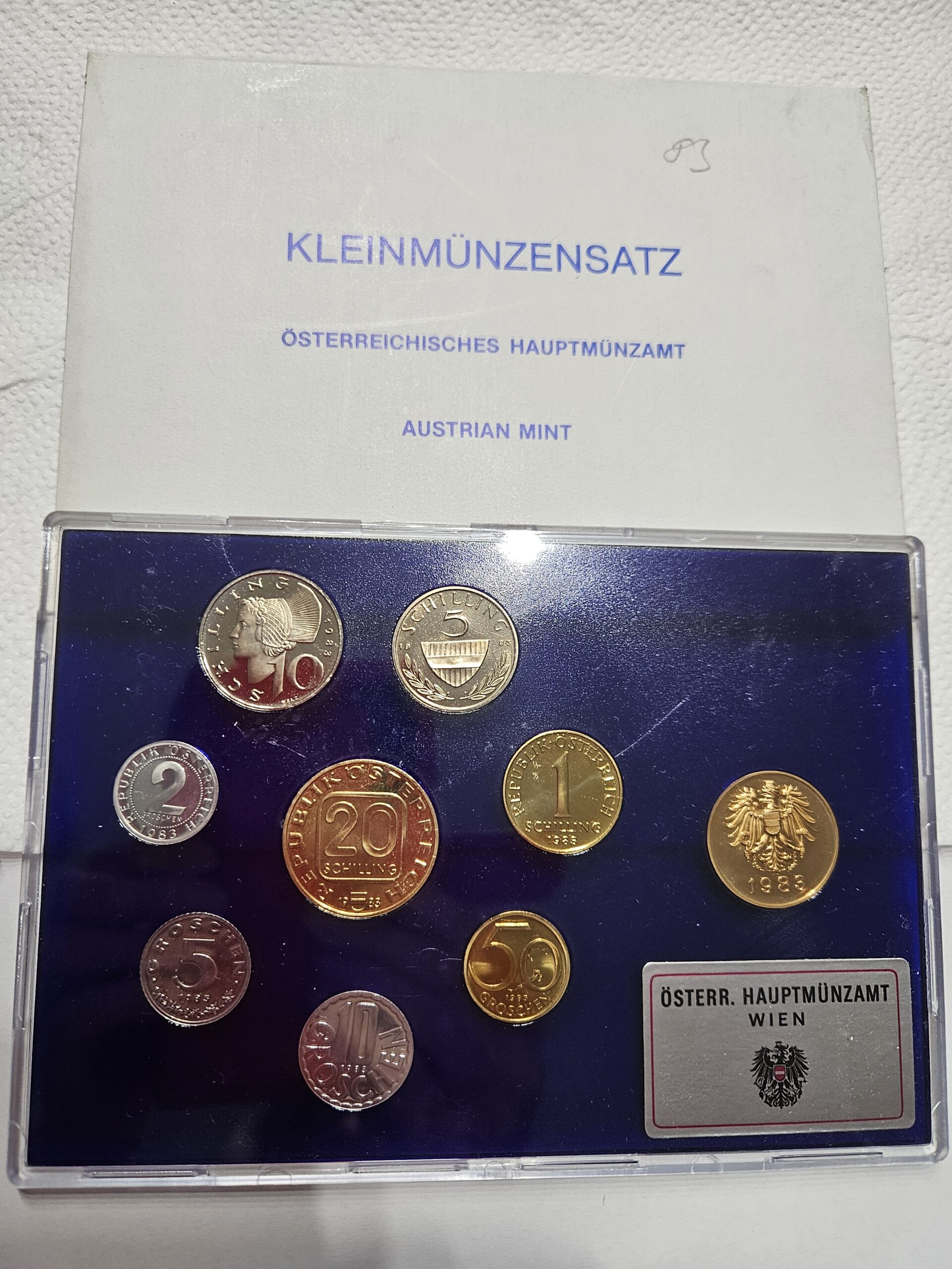 ÖSTERREICH 2. Repbulik KMS Schilling-Münzensatz 1983, PP, Österreichisches Hauptmünzamt, Überkarton mit Gebrauchsspuren